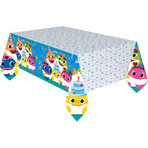 Papírový ubrus na stůl Baby Shark růžový 120x180 cm.