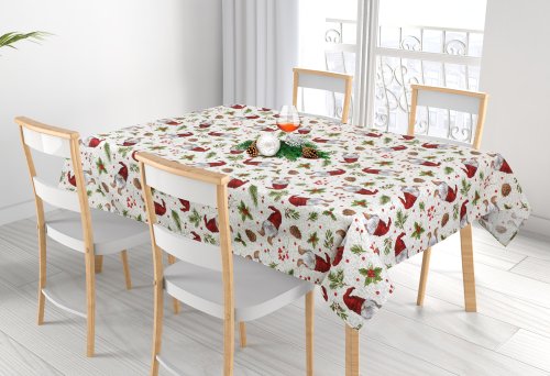 Ubrus VÁNOCE materiál 55% Bavlna, 45% Polyester 180g/m2 praní na 40°C šetrné odstředění sušit v sušičce nedoporučujeme žehlit do 150°C Dekorační látkový ubrus, který doplní váš interiér.