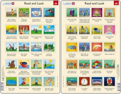 Puzzle Angličtina – delší věty RA13 20 dílků, každý s malým obrázkem. Pod každým dílkem se nachází text, který se vztahuje k příslušnému obrázku. Přečti text a najdi k tomu odpovídající obrázek. Každý dílek lze umístit pouze na přesně určené místo, což umožní dětem ověřit, zda správně spojily obrázek a text.