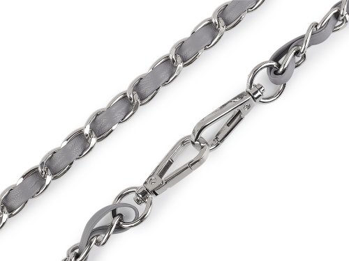 Kovový řetízek je efektně propletený řemínkem z eko kůže. Využijete ho na menší kabelky, psaníčka nebo pouzdra na mobilní telefony. Na obou jeho koncích najdete připevněné karabinky. Řetízek není určený na velkou zátěž.