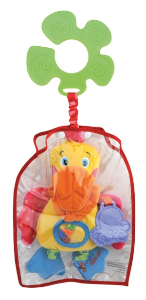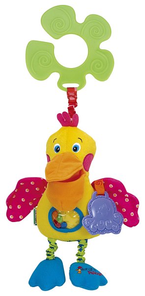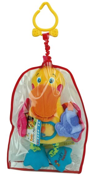 Pelikán k zavěšení na kočárek nebo postýlku je vhodný již od raného dětství, kdy díky tomu, že je ušitý z různých materiálů, podporuje vizuální hmatové i sluchové vjemy dítka.