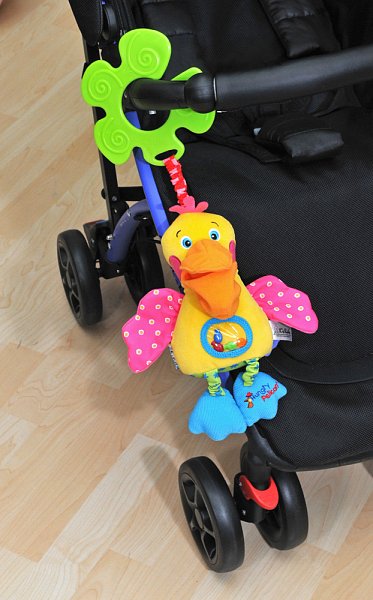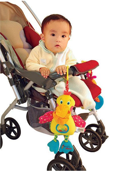 Pelikán k zavěšení na kočárek nebo postýlku je vhodný již od raného dětství, kdy díky tomu, že je ušitý z různých materiálů, podporuje vizuální hmatové i sluchové vjemy dítka. Při pohmatu šustí a chrastí a zároven dítě vnímá hmatem různé typy povrchů.