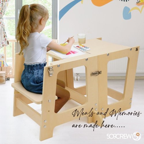Velikost produktu: — Verze věž: 42 (Š) x 42,5 (H) x 87 (V) cm — Verze stolu a židle – 78 (Š) x 42,5 (H) x 43,5 (V) cm