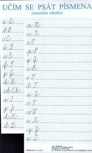 Stíratelná tabulka A4 : - psací písmo - velká abeceda - malá abeceda K popisování můžete využít např. stíratelné značkovače Centropen 2507