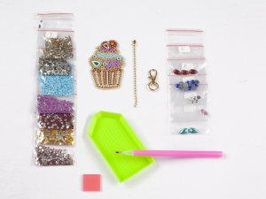 Udělej si svoji klíčenku pomocí kamínků Diamond – 3 druhy- sova, zmrzlina a srdíčko.
