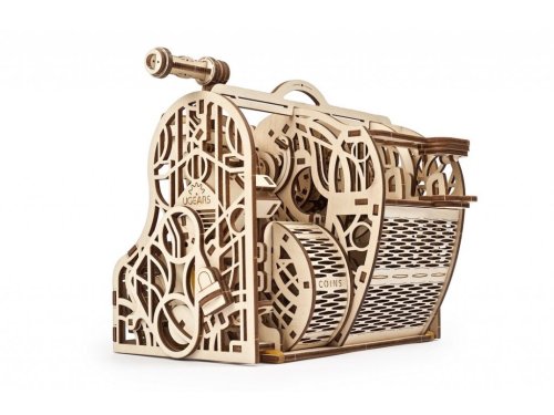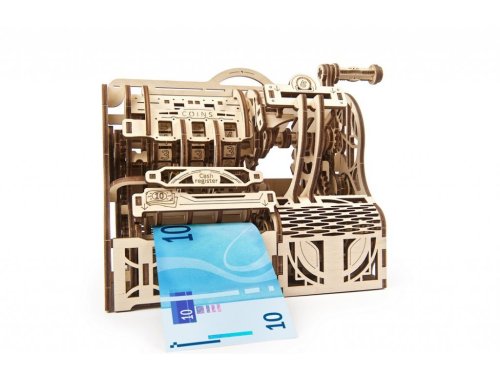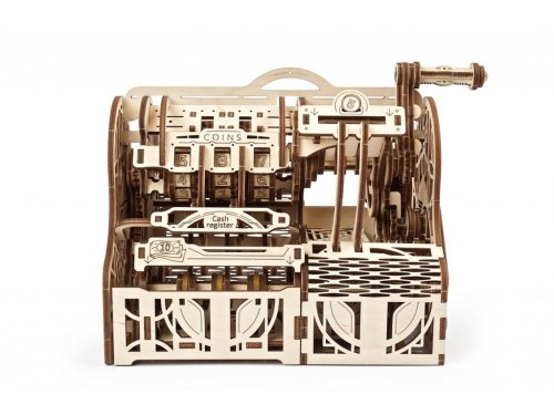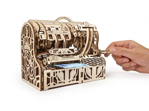 Uplatněte při prodeji domácích limonád! Stavebnice mechanické starožitné art-deco pokladny vyrobená z překližky. Pokladna je vybavena oddělenými boxy na bankovky i mince a také odkládacím prostorem pro pero a poznámky. Přijímá a počítá většinu běžně užívaných mincí o průměru 10–35 mm. Zásuvky s penězi jsou zajištěny volitelným kódem a klíčem, jejich otevřením se vynuluje počítadlo. Umožňuje rovněž ukládat účty a záznamy. Vhodná jako hračka i pokladnička. Vybaveno detailním návodem k sestavení. Hlavní vlastnosti: 405 precizně vyřezaných dílkůstřední obtížnost sestavenípřijímá a počítá bankovky i minceukládá účty a záznamyochrana uživatelsky volitelným kódem a klíčemnavrženo a vyrobeno na Ukrajině