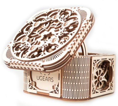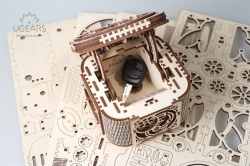 Mechanický drahokam. Stavebnice šperkovnice vyrobená z překližky. Uchvátí Vás svým vyřezávaným víkem a postranními okýnky odhalujícími uhrančivou hloubku svého mechanického tajemství. Její otevření je malým rébusem, kterým můžete ozvláštnit dárek vysoké reálné, či sentimentální hodnoty. Pootočením víka uvolněte nenápadný klíč, který vložte do čela šperkovnice a jeho otáčením pak skříňku otevřete. Vybaveno detailním návodem k sestavení. Hlavní vlastnosti: 190 precizně vyřezaných dílkůstřední obtížnost sestaveníúložný prostornavrženo a vyrobeno na Ukrajině