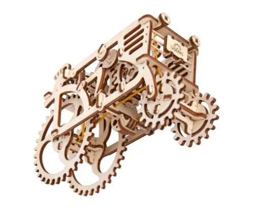 Okuste údiv nad zázraky strojírenství. Stavebnice traktoru vyrobená z překližky. Mechanika je do detailu propracovaná, a vy tak můžete pozorovat pohyb soukolí a táhel motoru. Traktor je díky natahovacímu mechanismu schopen jízdy. Má funkční dvoustupňovou převodovku. Jako příslušenství je k němu nabízena odpovídající vlečka, s níž prohloubíte celkový zážitek ze stavby a provozu modelu. Vybaveno detailním návodem k sestavení. Hlavní vlastnosti: 97 precizně vyřezaných dílkůnízká obtížnost sestavenírozšiřitelný o vlečkuvýsledný model je schopný samostatné jízdy včetně zpátečkynavrženo a vyrobeno na Ukrajině