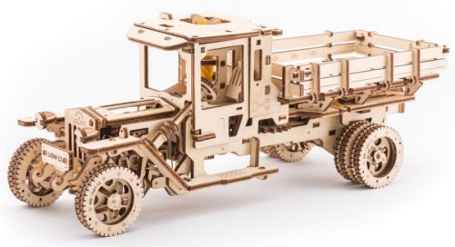 Závozníkem éry prohibice. Stavebnice nákladního vozu vyrobená z překližky. Patří mezi nejnáročnější modely v nabídce, jeho kompletace Vás bude zvláště těšit. Korba vozidla má sklopné bočnice a je připravena pro Vaše vizitky. Mechanika je do detailu propracovaná, a vy tak můžete pozorovat pohyb pístů motoru. Vůz je řiditelný a díky natahovacímu mechanismu je schopen jízdy. Má funkční převodovku pro volnoběh a zpátečku. Může se pyšnit dalšími mechanickými podrobnostmi, plynovým pedálem/ovladačem rychlosti a ruční brzdou. Jízdní dynamice slouží odpružená přední náprava a pogumování kol také zajišťuje spolehlivý kontakt s povrchem jízdní dráhy. Jako příslušenství je k náklaďáku nabízena celá sada modifikací, s níž prohloubíte celkový zážitek ze stavby a provozu modelu. Uspořádejte závody s dalšími modely UGEARS! Vybaveno detailním návodem k sestavení. Hlavní vlastnosti: 420 precizně vyřezaných dílkůvysoká obtížnost sestaveníotevírací dveře a kapotaodpružená přední náprava, pogumování kolrozšiřitelný o bohaté příslušenstvívýsledný model je řiditelný a schopný samostatné jízdy včetně zpátečkyovládání rychlostinavrženo a vyrobeno na Ukrajině