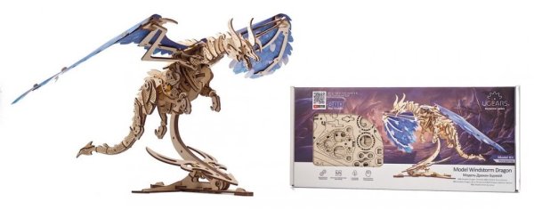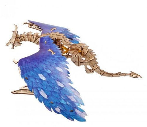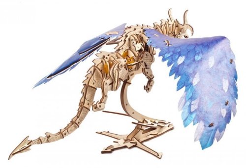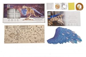 Oživte mýtus. Stavebnice draka vyrobená z překližky. Sledujte práci natahovacího mechanického srdce modelu v jeho otevřené konstrukci. Drak realisticky víří křídly a pohybuje tělem i ostatními končetinami. Detaily pohybu ohromí fanoušky mechaniky i fantasy. Natahuje se klíčem a je vybaven spouští. Můžete si jej vystavit s pomocí dodávaného stojanu, ale je možno jej i zavěsit, a podtrhnout tak celkový dojem. Vybaveno detailním návodem k sestavení. Hlavní vlastnosti: 320 precizně vyřezaných dílkůstřední obtížnost sestavenínavrženo a vyrobeno na Ukrajině
