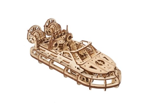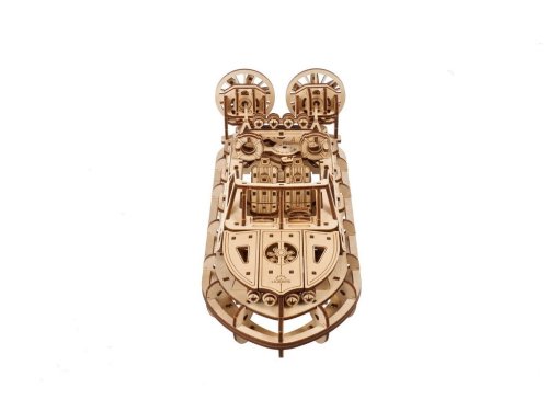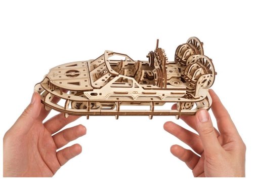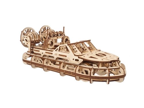 Záchranné vznášedlo. Tento dřevěný model je poháněn pružinovým motorem s navíjecím ráčnovým klíčem, umístěným na podvozku plavidla. Spínač Start/Stop vám umožňuje natáhnout motor deseti otáčkami ve směru hodinových ručiček, poté aktivovat motor a díky dvojité vrtuli napodobuje jemné kývavé pohyby skutečného vznášedla. Vynikající realismus, chytrý design a pozornost k detailu jsou charakteristickými znaky modelů Ugears. Hlavní vlastnosti: doba sestavení - cca 6 hodobtížnost střednínávod v 11 jazycíchstřední obtížnostnavrženo a vyrobeno na Ukrajině383 dílků