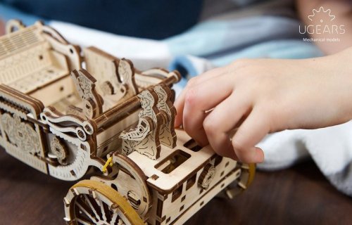 Dřevo a pohyb - jak to jde dohromady? Jednoduše! Mechanický pohyb a tradiční materiál spojují 3D modely UGEARS. Poznejte tajemství převodů, gumičkových motorů, koleček a dalších mechanických součástek! Zábavné skládání bez nutnosti lepení, propracované detaily, hladký provoz a kvalitní zpracování - plně funkční pohyblivé 3D puzzle UGEARS ohromí i toho, kdo neměl fyziku ve škole právě v oblibě. Do detailu propracované dřevěné 3D skládačky ukrajinské značky UGEARS jsou vhodné nejen pro rozvoj motoriky a představivosti, ale jsou i neskutečně zábavné. Díky vysoké kvalitě výroby jsou při správné údržbě modely po sestavení plně funkční a pohyblivé a umožňují tak lépe poznat tajemství mechaniky. 3D puzzle UGEARS jsou opatřeny podrobným obrázkovým návodem. UPOZORNĚNÍ: Pro správné fungování a bezproblémový provoz je třeba součástky, u kterých je to uvedeno v návodu (zejména osy), promazat voskem z obyčejné svíčky, aby byla rotace prováděna s minimálním třením. Vhodné pro stavitele ve věku od 14 let. Rozměr složeného puzzle cca 52 x 12 x 13,5 cm