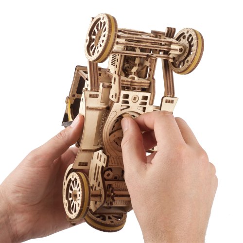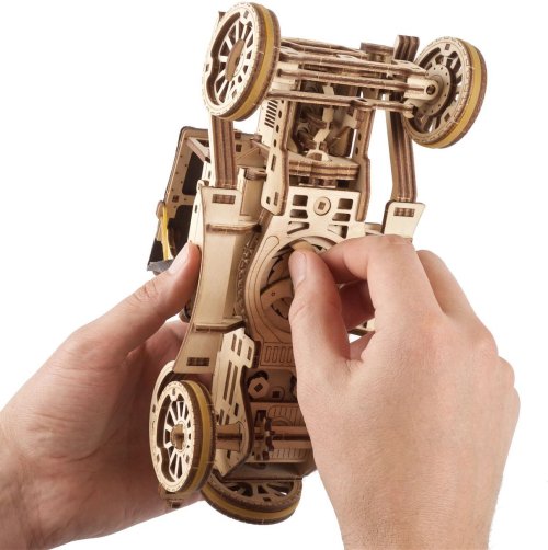 Dřevo a pohyb - jak to jde dohromady? Jednoduše! Mechanický pohyb a tradiční materiál spojují 3D modely UGEARS. Poznejte tajemství převodů, gumičkových motorů, koleček a dalších mechanických součástek! Zábavné skládání bez nutnosti lepení, propracované detaily, hladký provoz a kvalitní zpracování - plně funkční pohyblivé 3D puzzle UGEARS ohromí i toho, kdo neměl fyziku ve škole právě v oblibě. Do detailu propracované dřevěné 3D skládačky ukrajinské značky UGEARS jsou vhodné nejen pro rozvoj motoriky a představivosti, ale jsou i neskutečně zábavné. Díky vysoké kvalitě výroby jsou při správné údržbě modely po sestavení plně funkční a pohyblivé a umožňují tak lépe poznat tajemství mechaniky. Rozměry složeného modelu: 26,5 x 14,4 x 12,5 cm 3D puzzle UGEARS jsou opatřeny podrobným obrázkovým návodem. UPOZORNĚNÍ: Pro správné fungování a bezproblémový provoz je třeba součástky, u kterých je to uvedeno v návodu (zejména osy), promazat voskem z obyčejné svíčky, aby byla rotace prováděna s minimálním třením Rozměr složeného puzzle cca 26,5 x 14,4 x 12,5 cm