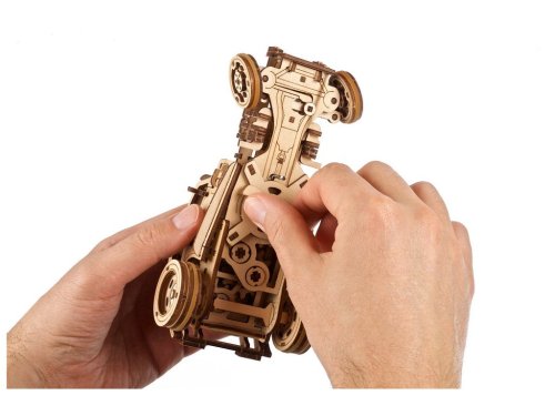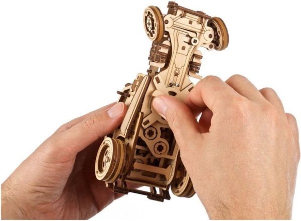 Dřevo a pohyb - jak to jde dohromady? Jednoduše! Mechanický pohyb a tradiční materiál spojují 3D modely UGEARS. Poznejte tajemství převodů, gumičkových motorů, koleček a dalších mechanických součástek! Zábavné skládání bez nutnosti lepení, propracované detaily, hladký provoz a kvalitní zpracování - plně funkční pohyblivé 3D puzzle UGEARS ohromí i toho, kdo neměl fyziku ve škole právě v oblibě. Do detailu propracované dřevěné 3D skládačky ukrajinské značky UGEARS jsou vhodné nejen pro rozvoj motoriky a představivosti, ale jsou i neskutečně zábavné. Díky vysoké kvalitě výroby jsou při správné údržbě modely po sestavení plně funkční a pohyblivé a umožňují tak lépe poznat tajemství mechaniky. Rozměry složeného modelu: 18,5 x 12 x 7,5 cm 3D puzzle UGEARS jsou opatřeny podrobným obrázkovým návodem. UPOZORNĚNÍ: Pro správné fungování a bezproblémový provoz je třeba součástky, u kterých je to uvedeno v návodu (zejména osy), promazat voskem z obyčejné svíčky, aby byla rotace prováděna s minimálním třením Rozměr složeného puzzle cca 18,5 x 12 x 7,5 cm