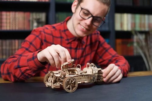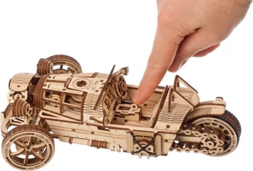Dřevo a pohyb - jak to jde dohromady? Jednoduše! Mechanický pohyb a tradiční materiál spojují 3D modely UGEARS. Poznejte tajemství převodů, gumičkových motorů, koleček a dalších mechanických součástek! Zábavné skládání bez nutnosti lepení, propracované detaily, hladký provoz a kvalitní zpracování - plně funkční pohyblivé 3D puzzle UGEARS ohromí i toho, kdo neměl fyziku ve škole právě v oblibě. Do detailu propracované dřevěné 3D skládačky ukrajinské značky UGEARS jsou vhodné nejen pro rozvoj motoriky a představivosti, ale jsou i neskutečně zábavné. Díky vysoké kvalitě výroby jsou při správné údržbě modely po sestavení plně funkční a pohyblivé a umožňují tak lépe poznat tajemství mechaniky. Rozměry složeného modelu: 26,2 x 14 x 9 cm 3D puzzle UGEARS jsou opatřeny podrobným obrázkovým návodem. UPOZORNĚNÍ: Pro správné fungování a bezproblémový provoz je třeba součástky, u kterých je to uvedeno v návodu (zejména osy), promazat voskem z obyčejné svíčky, aby byla rotace prováděna s minimálním třením Rozměr složeného puzzle cca 26,2 x 14 x 9 cm