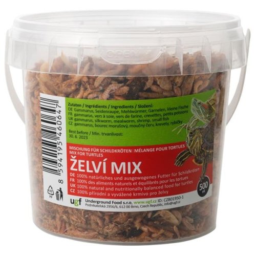 Želví mix je 100% přírodní krmivo pro vodní a suchozemské želvy, které obsahuje mix vodních živočichů a sušený hmyz pro pestrost a vyváženost jejich potravy.