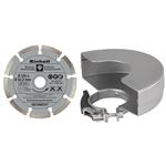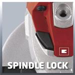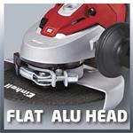 Kotouč o maximálním průměru 125 mm chrání bezpečnostní ochranný kovový kryt a snadno jej vyměníte pomocí zámku vřetena (klíč je schovaný v rukojeti). Plochá hliníková hlava převodovky zamezuje rušivým vibracím při práci.