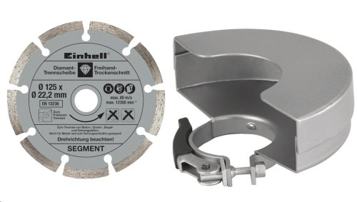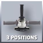 Úhlová bruska TE-AG 125 / 750 Kit Expert značky Einhell využívá pro práci rychlost 12 000 min-1 a příkon 750 W. V dělení i broušení vám bude pomáhat přídavná rukojeť, která jde nastavit do tří pozic a ergonomicky tvarovaná rukojeť s měkčeným držadlem.