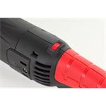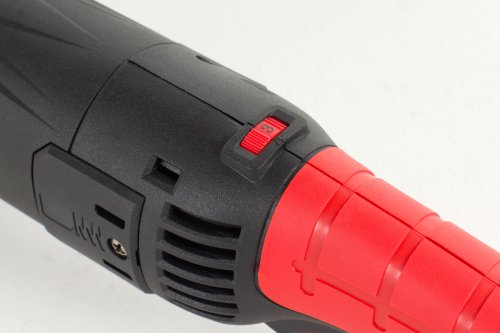 Řezný kotouč o průměru 125 mm bez problému vyměníte. Vše vám tlačítko pro usnadní aritace vřetena. Rukojeť brusky je navíc ergonomicky tvarovaná. Při práci vám zajistí pohodlí. Kromě toho je pokrytá protiskluzovým materiálem, takže ji pevně uchopíte. V balení najdete také přídavnou boční rukojeť.