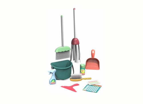 Úklidová sada obsahuje 10 komponentů- smetáček a lopatku, smeták, mop, kýbl, čistící prostředky a další. Výrobek je vhodný pro děti od 3 let.