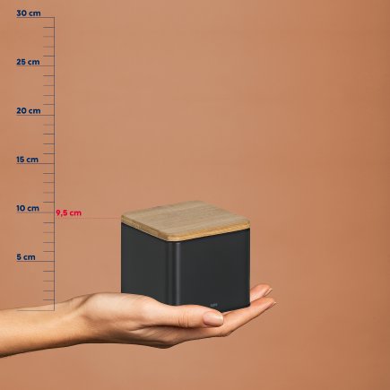 Kovová dóza s bambusovým víkem, stohovatelná matná černá 11,3 cm*11,3cm*9,7cm