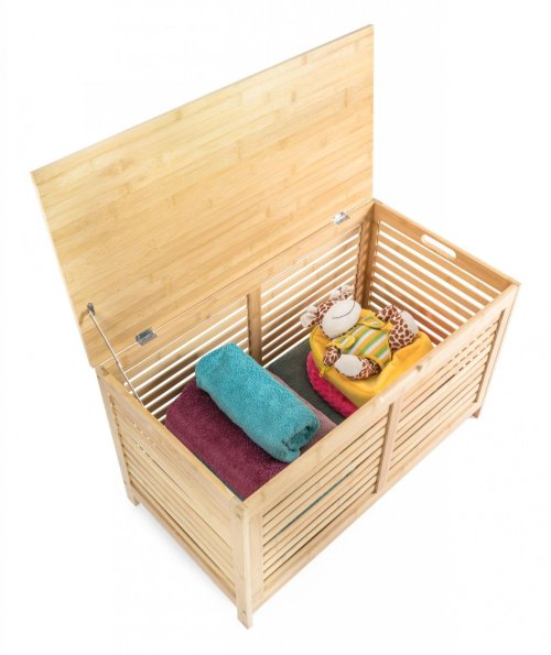Tento bambusový box je skvělým doplňkem do ložnice, dětského i obývacího pokoje nebo předsíně. Nabízí úložný prostor o vnitřní nosnosti 10 kg pro uložení dek, polštářů nebo sezónního oblečení, děti do něj mohou uklízet oblíbené hračky, v předsíni zas uschová sezónní doplňky, deštníky a podobně.