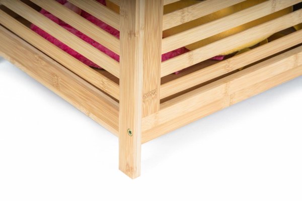Bambus je překvapivě lehký, takže s boxem můžete snadno manipulovat. Zároveň je ale dostatečně pevný, takže unese i větší zátěž. Jednou z výborných vlastností bambusového dřeva je navíc jeho velká odolnost vůči vlhkosti a přirozená odolnost vůči bakteriím a plísním, takže se nemusíte obávat jeho umístění v koupelně nebo prádelně.