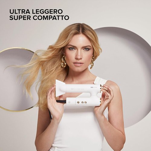 Tento elegantní a ultra lehký fén vyniká digitálním motorem nové generace s rychlostí až 110 000 ot./min. a exkluzivní technologií Gemini Air, která vytváří proud vzduchu 3× silnější než u běžných fénů. Díky sklápěcí rukojeti a otočnému mechanismu poskytuje maximální pohodlí při použití a snadné skladování. Digitální regulace teploty a iontová technologie zajistí zdravý vzhled vlasů, eliminují krepatění a zanechají vlasy hladké a lesklé.