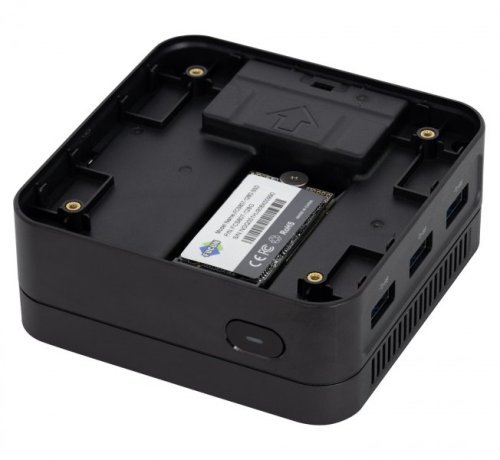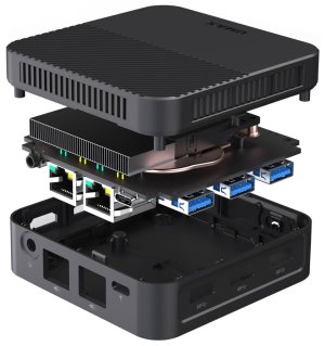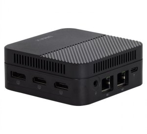 Mini PC vyniká skvělou konektivitou – nabízí dva HDMI 2.0 výstupy a DisplayPort 1.4 pro připojení až tří monitorů s podporou 4K při 60 fps s HDR. Pro síťové připojení jsou k dispozici dva GBit LAN porty a duální Wi-Fi 5. Patentovaný design tichého chlazení umožňuje nepřetržitý provoz 24/7 při spotřebě max. 20 W. Kompaktní rozměry 89 × 89 × 35 mm a hmotnost pouhých 250 g spolu s přiloženým VESA držákem umožňují zavěsit počítač na libovolné místo.