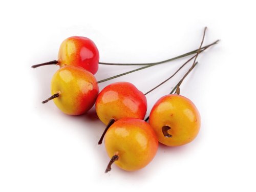 Malá dekorační jablíčka jsou připevněná na drátku, který se dá dobře tvarovat. Můžete je zapíchnout do polystyrenových polotovarů, věnců, květinových vazeb apod.