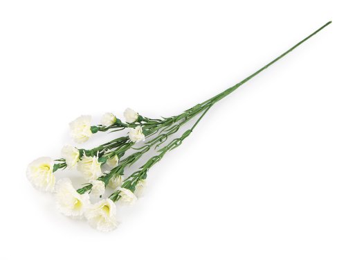 Kytice umělých mini karafiátů vynikne ve váze, ale jednotlivé stonky můžete v případě potřeby odstřihnout a využít je třeba na věnce a jiné dekorace. Uvnitř je drát, díky kterému je můžete různě tvarovat.