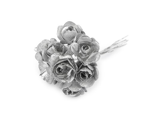 Umělá papírová mini růže metalická na drátku - stříbrná