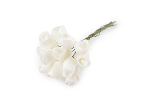 Mini růže jsou vyrobené z pěnové gumy. Drátek, který je jejich součástí, usnadňuje připevnění a manipulaci. Růžičky využijete do svatebních voniček, na věnce i k výrobě různých dekorací a květinových aranžmá.