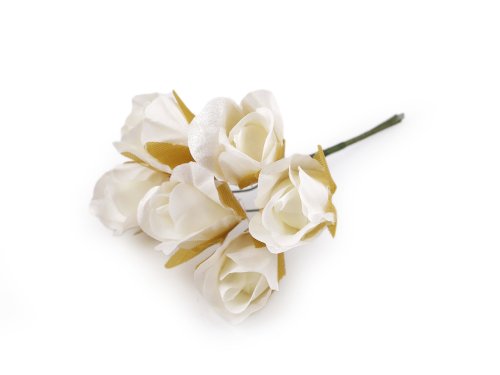Umělé mini růže jsou na floristickém drátku. Můžete je lehce ohýbat a tvarovat dle potřeby. Růžičky využijete k výrobě svatebních dekorací, voniček nebo k ozdobení čelenek do vlasů, věnců, apod.