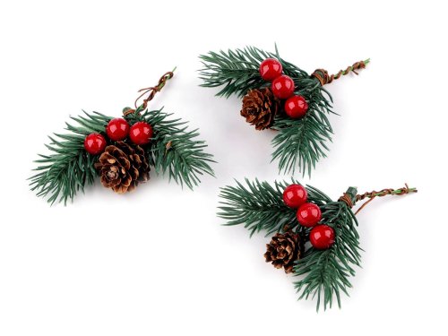 Umělá mini větvička s bobulemi a šiškami oživí podzimní a zimní aranžmá. Můžete ji zakomponovat do květinových vazeb, věnců nebo květináčů.