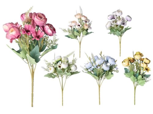 Dekorativní puget umělých květin o délce 310 mm spojuje pivoňky a margaréty v atraktivním barevném mixu. Květiny jsou vyrobené z kvalitního plastu, který věrně napodobuje skutečný vzhled a zároveň zajišťuje dlouhou životnost bez nutnosti údržby. Puget je vhodný do menších váz, pro jarní či celoroční výzdobu, aranžmá i dekorační projekty. Svým svěžím vzhledem dodá interiéru příjemnou a elegantní atmosféru. Zboží je dodáváno v mixu. Doručované zboží je vybíráno náhodně a nelze vybrat konkrétní provedení.