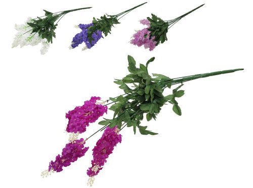 Umělý šeřík vyrobený z plastu o délce 570 mm v barevném mixu. Jednotlivé kusy se mohou lišit odstínem, což dodává dekoraci přirozený a svěží vzhled.
