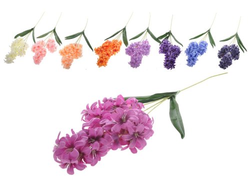 Umělý hyacint vyrobený z plastu o délce 700 mm v barevném mixu. Jednotlivé kusy se mohou lišit odstínem, což dodává dekoraci přirozený a živý vzhled.