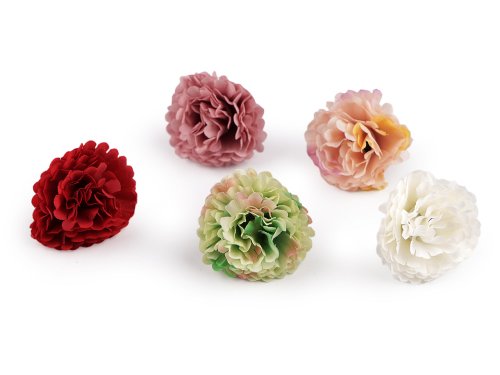 Malé umělé květy využijete k aranžování květinových vazeb, ikeban či věnců. Jsou vhodné i k dozdobení věnečků do vlasů, čelenek, fascinátorů a sponek. Okvětní lístky jsou textilní. Do stonku lze zasunout drát s průměrem 2 mm.