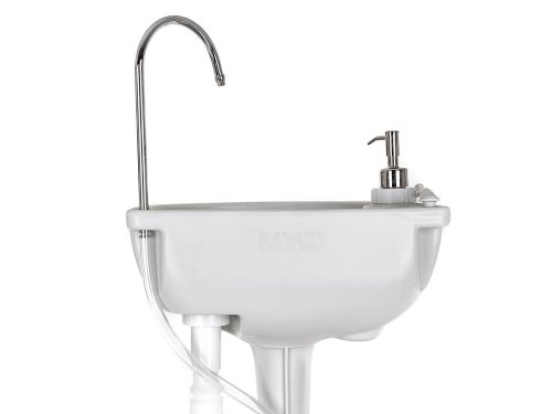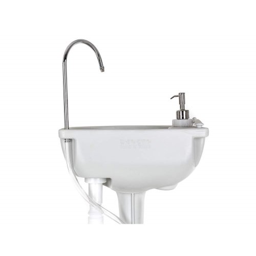Umyvadlo je vybaveno zásobníkem čisté vody o objemu 17 litrů + zabudovaným zásobníkem na tekuté mýdlo o objemu 3 litry a praktickým háčkem na umístění ručníku.