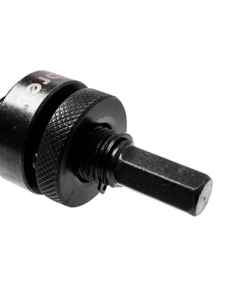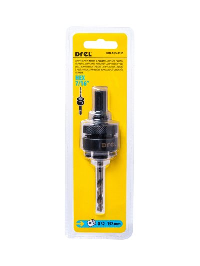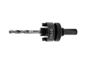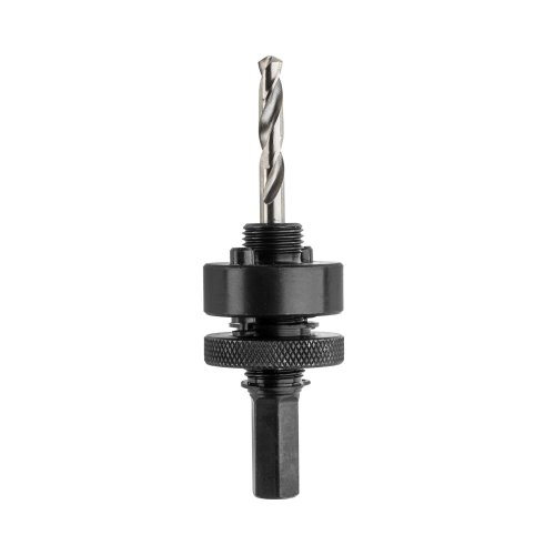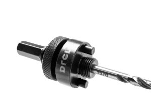 Unašeč pro vykružovací korunky Bimetal 32 - 152 mm.Unašeč se středovým vrtákem pro vykružovací BiM korunky 32 - 152mm. Korunku požadovaného průměru našroubujte na závit unašeče tak, aby do otvorů v korunce mohly zajet čepy v pojistné matici.