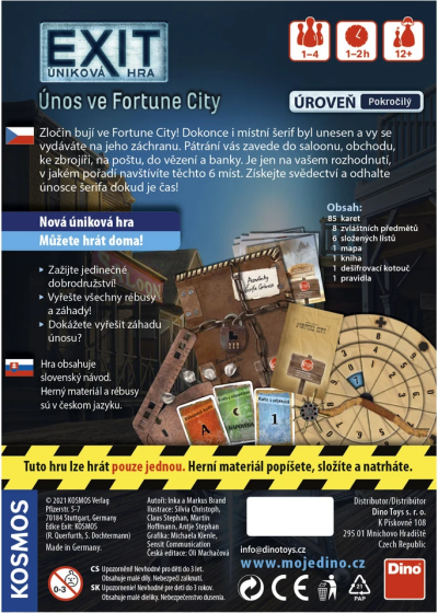 Napínavá úniková hra EXIT. Zločin bují ve Fortuně City. Dokonce i místní šerif byl unesen. Naleznete únosce na základě indicií a svědectví? Navštivte vězení, banku i saloon a odhalte pachatele včas! Věk: 12+