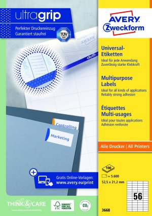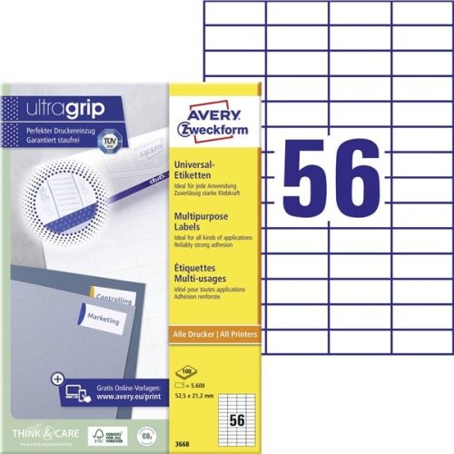 Univerzální etikety Avery, 52,5 x 21,2 mm, bílé
