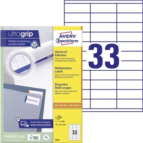 Univerzální etikety Avery, 70 x 25,4 mm, bílé