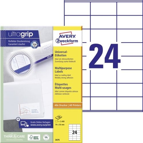 Univerzální etikety Avery, 70 x 36 mm, bílé