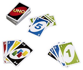 Hra UNO™ karty je klasická jednoduchá karetní hra s přiřazováním karet stejných barev a čísel, od které se nebudeš moci odtrhnout! Nyní přichází s novinkou pro ještě větší zábavu – v balíčku najdeš 3 akční přepisovatelné divoké karty, díky kterým můžeš vytvářet svá vlastní pravidla! Ve hře jsou i další speciální karty pro ještě lepší zábavu! V balíčku najdeš celkem 19 karet od každé ze čtyř barev (červená, zelená, modrá a žlutá) a speciální karty: 8x Vezmi si dvě karty, 4x Změna směru (v každé barvě), 4x Přeskoč karty (v každé barvě) a společně s nimi také 4x Divoká karta, 4x Vezmi si 4 karty, 1x Vyměň si karty a 3x karty Přepiš to. Nezapomeň zakřičet „UNO“, když už máš v ruce jenom jednu kartu. Rozjeď srandu s UNO™! Hra obsahuje 112 karet.