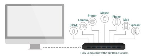 Díky 7 portům pro přenos dat je přepínání mezi zařízeními zbytečné
