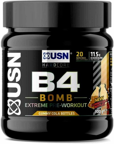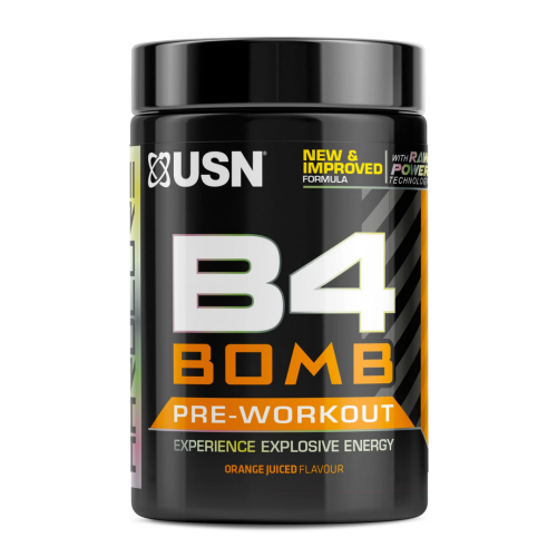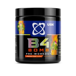! Obsahuje kofein, není vhodné pro děti a těhotné ženy. Jedna dávka (15 g) obsahuje 200 mg kofeinu. Produkt není vhodný pro osoby trpící přecitlivělostí na kofein. USN B4-Bomb je předtréninkový nápoj s aminokyselinami, vitamíny, minerály a účinnými extrakty z rostlin. Je vědecky navržen tak, aby zvyšoval Vaši energetickou hladinu a výdrž při tréninku. Obsahuje patentovanou složku TeaCrine® , který podporuje přirozené metabolické procesy v těle, aby dosáhly vyšší energie. Doporučené dávkování: