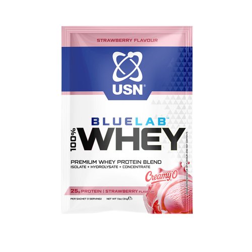 BLUELAB 100% WHEY PREMIUM PROTEIN je ultra prémiová formula bílkovinné směsi složené z nejkvalitnějšího syrovátkového proteinového koncentrátu, hydrolyzátu a isolátu s obsahem 25 g proteinu a 5,8 g BCAA v jedné dávce s maximálním využitím v trávicím traktu. Je navržen a formulován tak, aby byla zaručena nejvyšší kvalita syrovátkových proteinů. Při jeho přípravě jsou používány technologické postupy jako je např. ultrafiltrace, při kterých se používá nízká teplota pro získání extrémně kvalitních proteinů s nejlepšími vlastnostmi a nejkvalitnějšími látkami. Je používán profesionálními sportovci a sportovními týmy v celosvětovém měřítku. Tato bílkovinná směs byla navržena a vyvíjena za pomocí zpětné vazby od našich zákazníků a zaručuje optimální svalovou podporu a regeneraci, retenci dusíku, konverzi aminokyselin, nejlepší chuť a nejvyšší kvalitu proteinů. Pokud Vám záleží na kvalitě a využitelnosti produktů, které konzumujete, a nezáleží na tom, jestli jste jen sportovní nadšenec nebo profesionální sportovec, ať už trénujete pouze o víkendech nebo tvrdě cvičíte celý týden, BlueLab 100% Whey Protein Premium je tu pro Vás. Bez obsahu lepku. Doporučené dávkování: