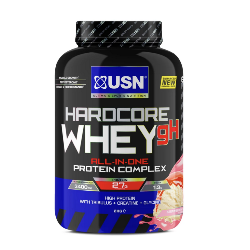 USN Hardcore whey gH je vhodným pro regeneraci a růst svalů. Má vysoký obsah bílkovin 81 g na 100 g. Také sacharidy, které přispívají k obnovení normální svalové funkce po vysoce intenzivním nebo dlouhém fyzickém tréninku vedoucí ke svalové únavě a vyčerpání zásob glykogenu ve svalech. Dále kreatin, který zvyšuje fyzický výkon během intenzivního tréninku. Obsahuje také Tribulus a Glycin. V jedné dávce dodáte tělu 27 g proteinu. Bez obsahu lepku. Doporučené dávkování: